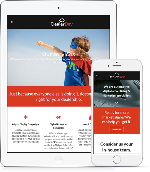 DealerDev is an Automotive Marketing and Digital Advertising agency with a strong focus in Tier 2 and 3 automotive entities. DealerDev was in need of corporate identity creation, responsive web design and application development services.